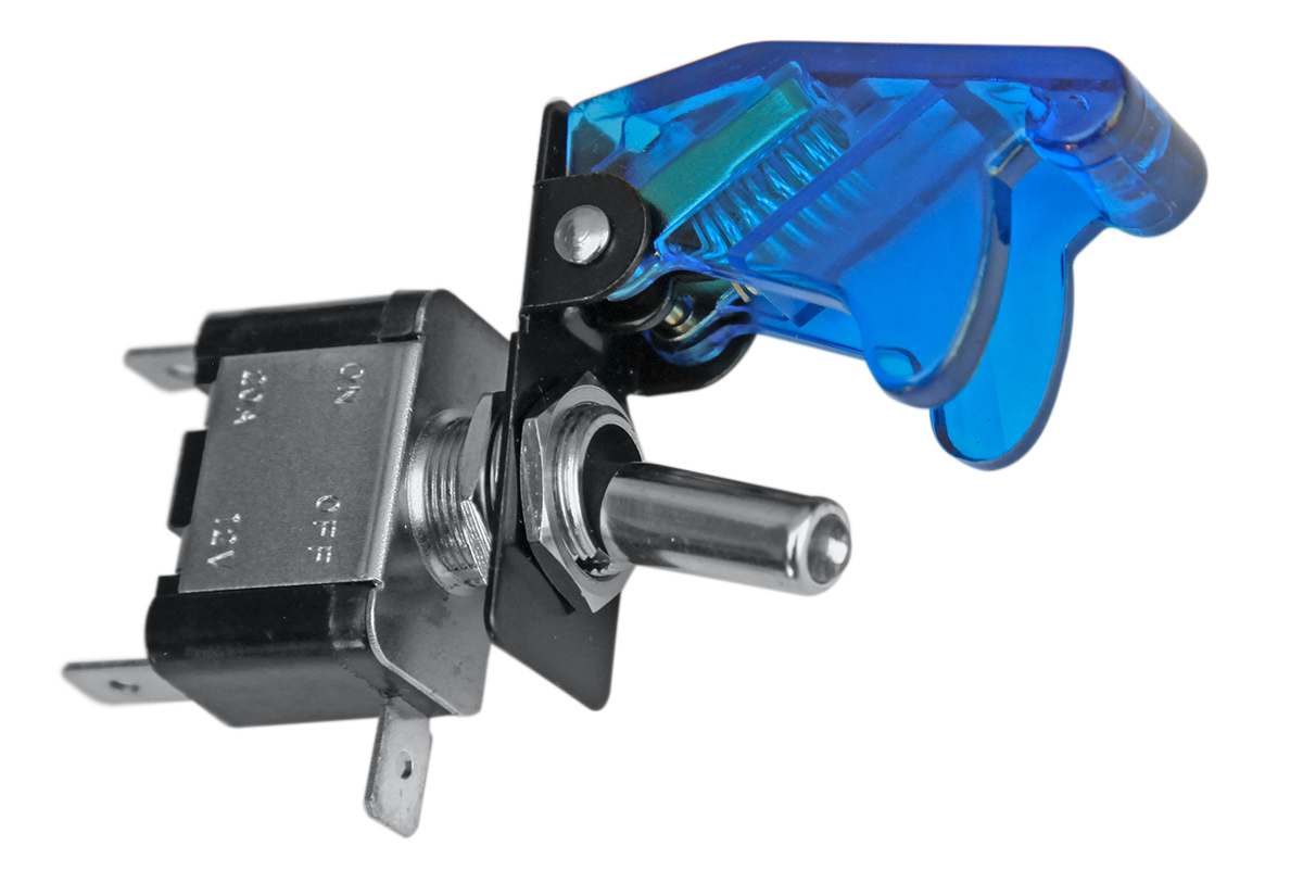 Тумблер имеет функцию подсветки. Для предотвращения произвольного переключения тумблера применяются защитные крышки, которые изготавливаются в различной цветовой гамме. Цвета крышки – синий