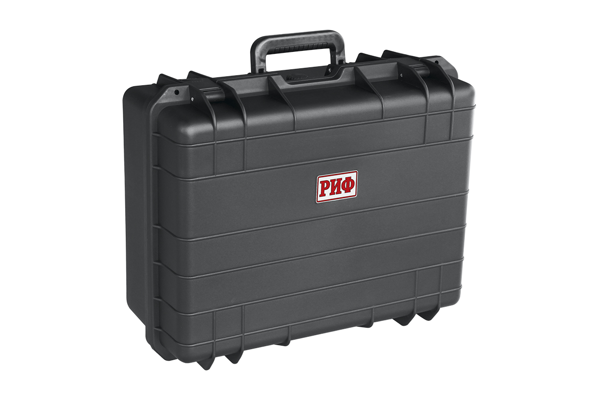 Новый кейс РИФ, так же, как и предыдущие модели, изготовлен из прочного противоударного пластика, защищен от доступа пыли и влаги резиновой прокладкой и плотно закрывающейся крышкой. На передней стенке есть клапан для регулировки доступа воздуха, что бывает необходимо при перепадах давления и температур. Внутри кейс заполнен плотным перфорированным поролоном для того, чтобы сделать гнезда нужной формы для оборудования.