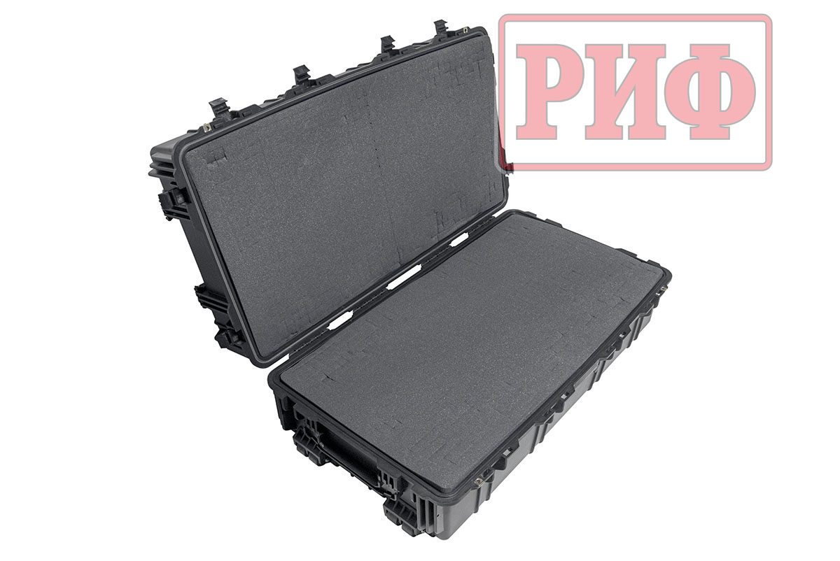 Защитные кейсы РИФ изготовлены из противоударного и чрезвычайно прочного пластика – его можно переехать на автомобиле, и ценное содержимое не пострадает. Кейсы абсолютно герметичны и содержимое кейса гарантировано защищено от доступа пыли и влаги благодаря резиновой прокладке и плотно закрывающейся крышке.