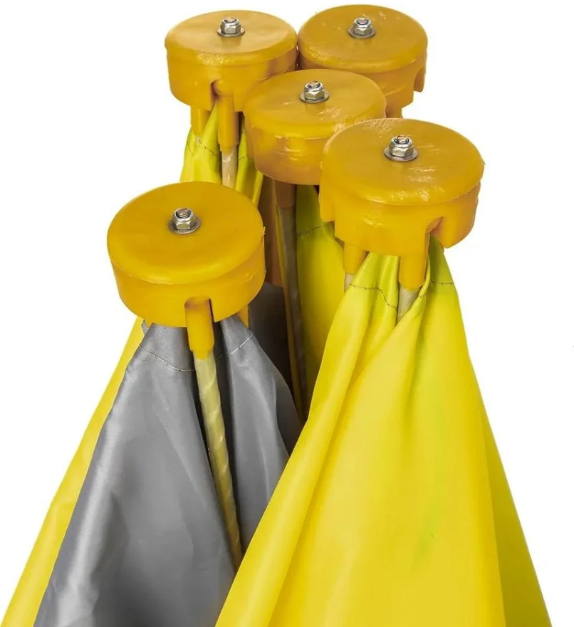Установить палатку можно в течение одной минуты даже одному человеку. Благодаря специальной системе крепления дуг, «хабы» палатки очень быстро переводятся из транспортного положения в рабочее состояние.