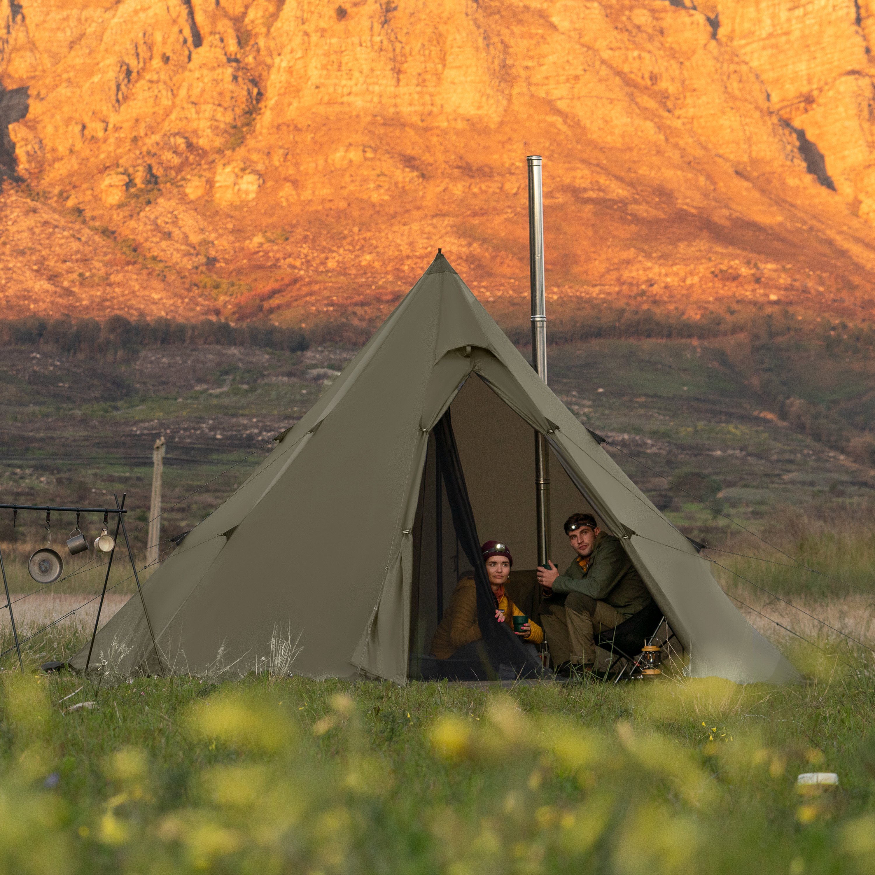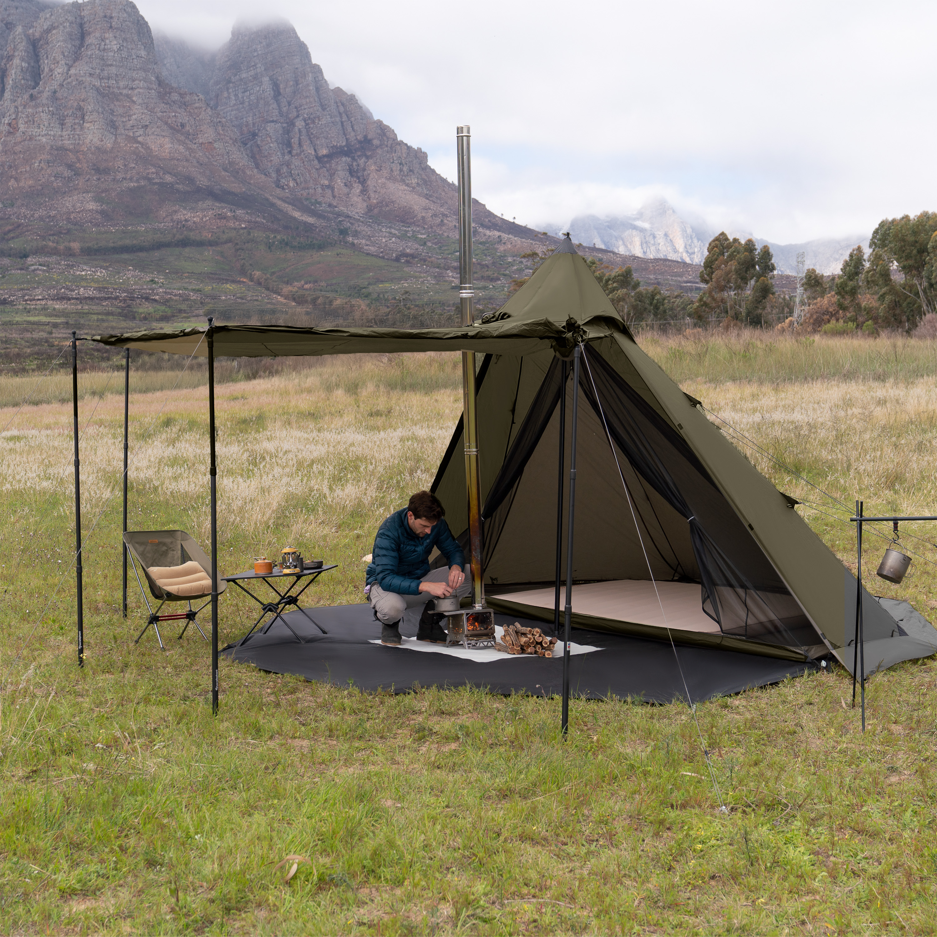 Большое внутреннее пространство позволяет комфортно сидеть внутри палатки, а при необходимости, отстегнув внутреннюю палатку, превратить конструкцию в просторный шатер.