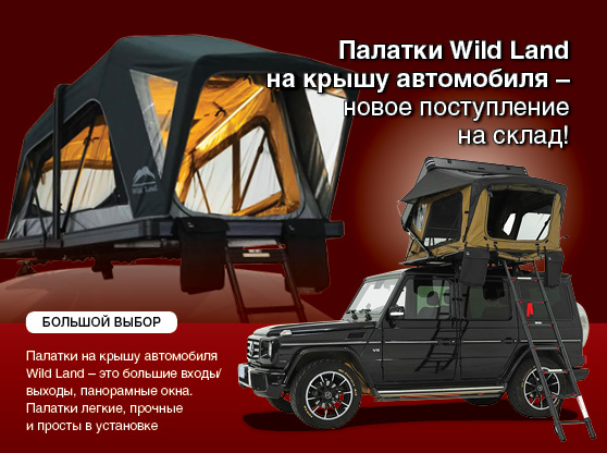 У нас на сайте вы найдете большой ассортимент палаток на крышу, аксессуаров и тентов от компании Wildland и других производителей!